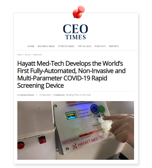 Hayatt Med-Tech Develops World’s First Fully-Automated, Non-Invasive and Multi-Parameter COVID-19 Rapid Screening Device